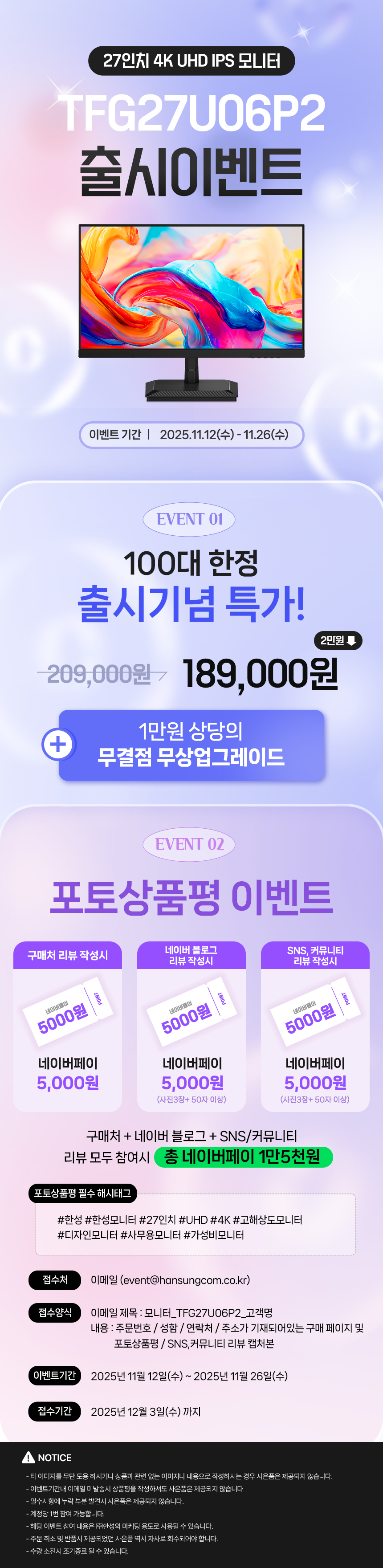 [색상영역] 10bit (8bit + FRC) / sRGB: 100% / DCI-P3: 95%