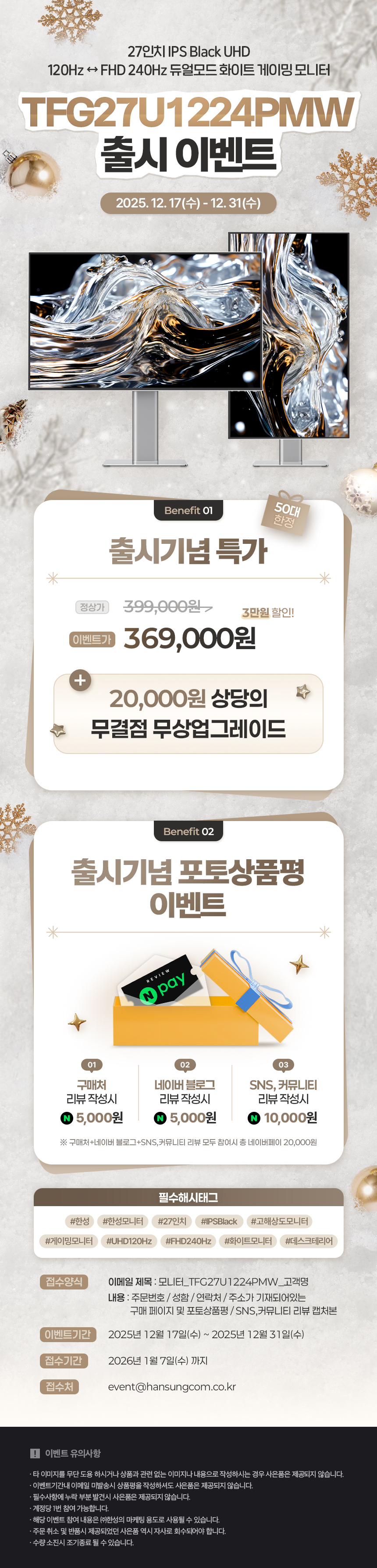 TFG27U1224PMW IPS Black UHD 120Hz FHD 240Hz 듀얼모드 게이밍 화이트