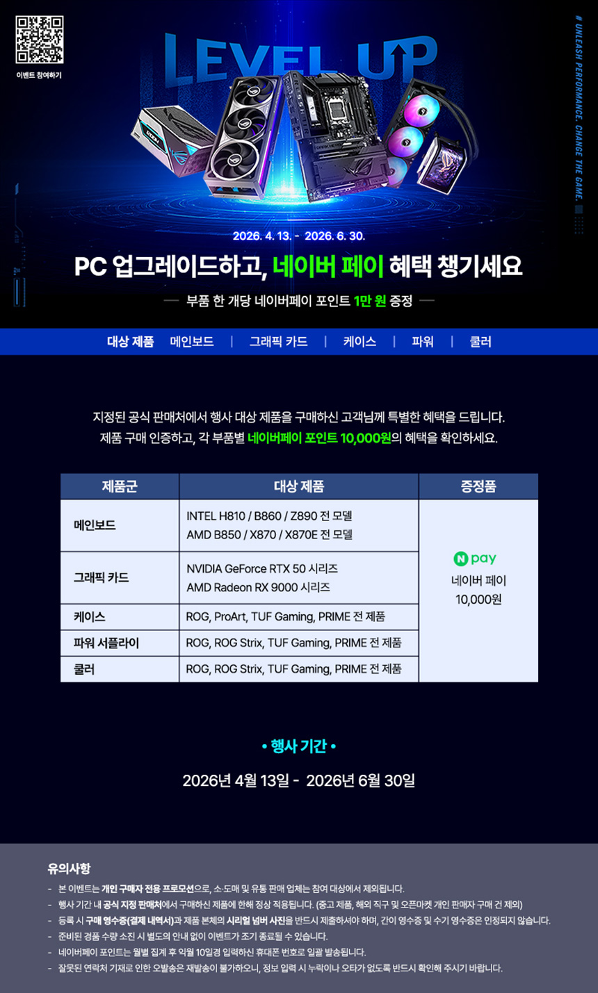 ASUS 제품 구매 시 부품 별 네이버페이 증정 이…