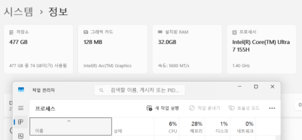 듀얼32기가 램으로 업글하니 메모리 사용율이 확 내려가
