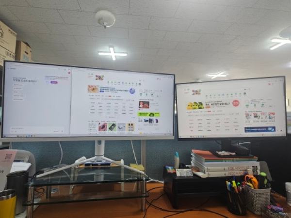 사무용으로 구매하였는데 화질고 좋고, 다좋은데 평면이라 화면 두개를 띄우면 가운데가 틔어나온듯 착시현상이 있네요.. 커브드가 더 좋았을수도?