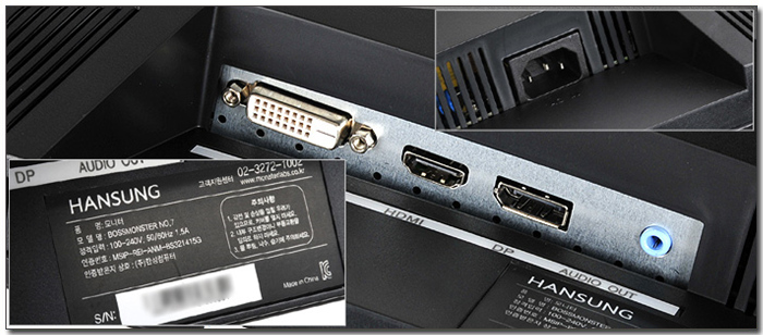 다양한 단자부 지원또한 장점이라 할 수 있다. 사진과 같이 DVI, DP를 지원하며 한성 모니터 최초로 HDMI 2.0을 지원해 144Hz를 불편없이 적용해 사용할 수 있다. (WQHD 해상도로 설정 했을 때 DP 와 HDMI에서 144Hz 적용이 가능하며 DVI 는 60Hz를 지원한다.) 특히 여러 화면을 동시에 보여주는 PBP 와 PIP 설정을 지원해 사용성을 높였다. 또한 헤드폰 연결 단자를 지원해 유저들이 손쉽게 연결해 활용할 수 있도록 배려했다.