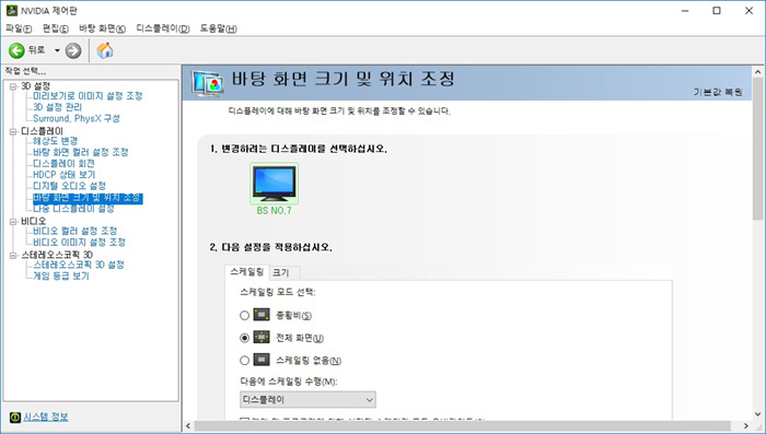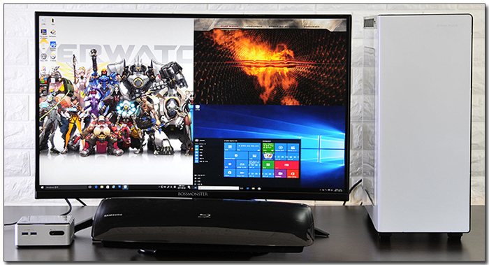 PIP 뿐만 아니라 PBP 기능도 제공되며 최대 3개 화면으로 분할해 활용할 수 있다. (PC와 블루레이 플레이어, 미니PC 가 정상적으로 인식된 것을 알 수 있다.) 특히 일부 제품의 경우 PBP 설정시 해상도 조정이 불가능 하거나 화면의 일그러짐 때문에 원할하게 사용하기 힘든데 반해 이 제품은 윈도우 10 환경에서 1280 x 1440 해상도 지정이 가능했을 뿐만 아니라 화면의 찌그러짐 등도 발생하지 않았다. (화면에 문제가 있을 경우 그래픽 카드 설정의 스케일링을 전체화면으로 설정하기 바란다.)
