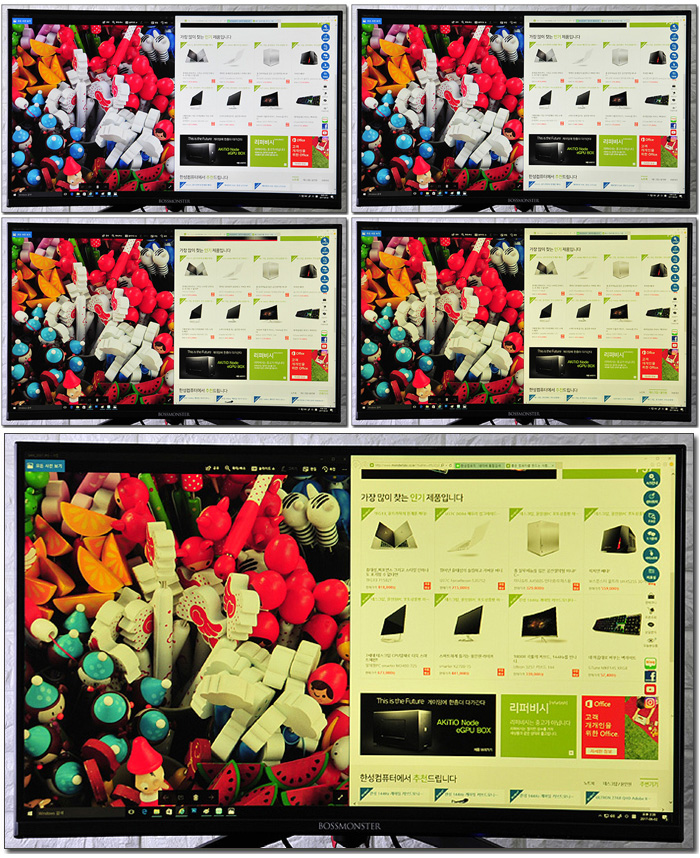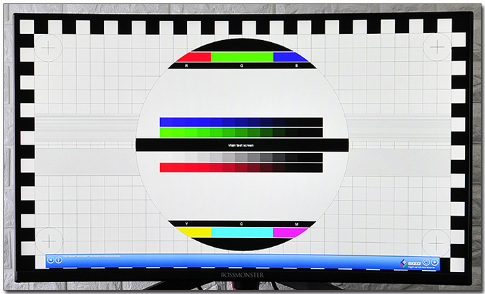 모니터 테스크 프로그램을 이용해 기본 색감을 확인하고 있는 모습으로 IPS 패널과 같은 강렬한 원색 표현을 보여주지 않았지만 선명도에서 부족함은 느껴지지 않았다. (VA 계열의 특성을 그대로 보여주고 있다. 컬러가 강하지는 않지만 무척 자연스럽다.)