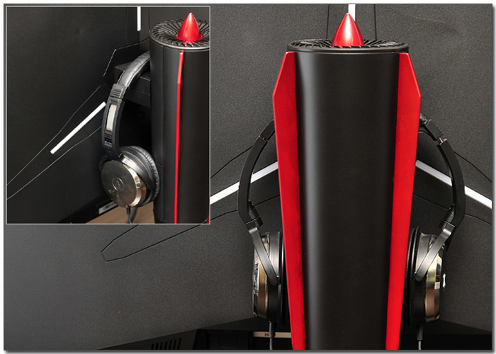 헤드폰 연결 단자를 지원해 사용하고 있는 이어폰이나 헤드폰 등을 간편하게 연결해 활용할 수 있다. 특히 사진과 같이 받침대 부분에 헤드폰을 거치할 수 있어 헤드폰 관리도 편할 것이다.