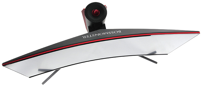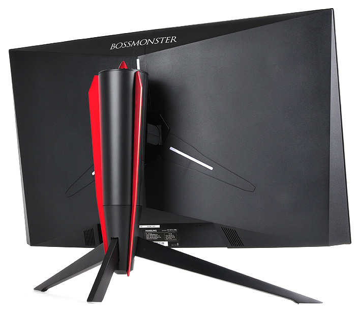 기기 후면부의 모습으로 라운딩 형태의 일반 커브드 모니터와 달리 각을 주어 세련된 느낌을 강조한 것이 눈에 띈다. LED 백라이트를 적용해 통풍구가 후면에 없음에도 불구하고 뜨겁다는 느낌은 받지 않았다.