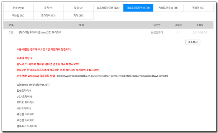 한성컴퓨터 에서는 제한적인 커스텀 작업을 지원한다. 사진과 같이 OS 및 메모리/SSD 용량 선택이 가능한다. 또한 자료실에서 손쉽게 제품관련 드라이버를 다운로드 받아 적용할 수 있다.