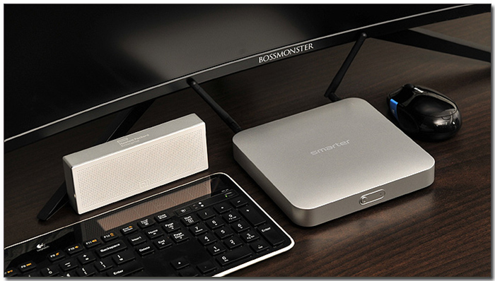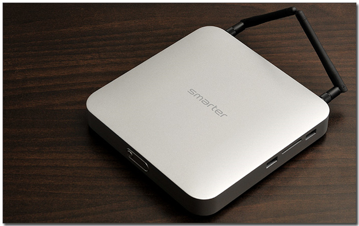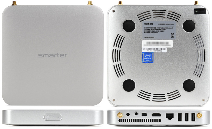 기기 전면부의 모습으로 무광택 마감으로 지문이나 먼지 등이 잘 뭍어나지 않는 장점이 있다. Smarter mini x7 2S 는 특정 장소에서만 설치해 사용해야 하는 일반 데스크탑PC 와 달리 방이나 사무실은 물론 회의실, 거실, 주방, 병원 등에 활용 가능하며 공간이 협소한 공장이나 연구소 등에서 설치해 사용할 수 있다.