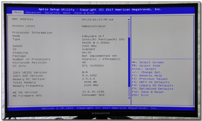 바이오스에 진입한 모습으로 일반 데스크탑PC와 큰 차이가 없는 것을 확인할 수 있다. 다양한 기능을 지원해 PC의 기능을 원하는대로 설정하는데 어려움은 없을 것이다.