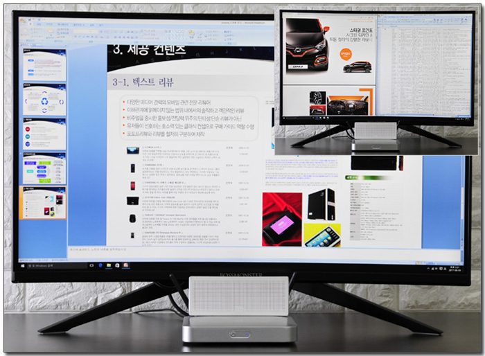 상단의 사진은 2개의 QHD 해상도 모니터를 연결한 모습으로 문제없이 작동되는 것을 확인할 수 있었으며 느려지는 등의 현상도 발생하지 않았다. 고화질 디스플레이를 연결해 작업해야할 경우 유용하게 활용할 수 있을 것이다.