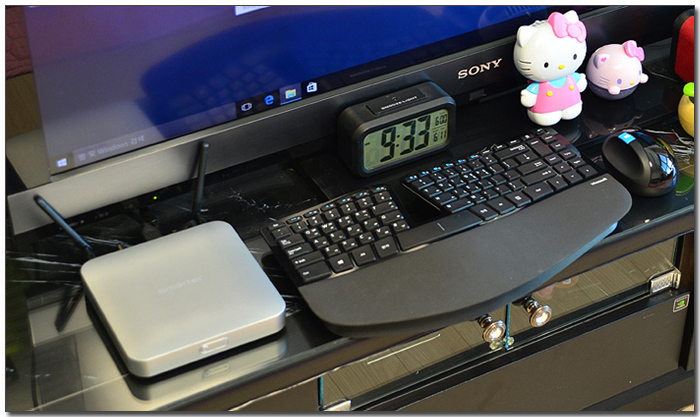이 제품은 후면부에 단자가 집중되어 있고 블루투스와 무선랜을 지원해 케이블로 인한 불편 없이 기기를 활용할 수 있다. (무선 키보드와 마우스를 사용했다.) 거실이나 매장 등에서 사용할 경우 케이블이 눈에 띄면 상당히 지저분한 느낌을 주는데 이 제품은 그런 문제 없이 사용할 수 있을 것이다.