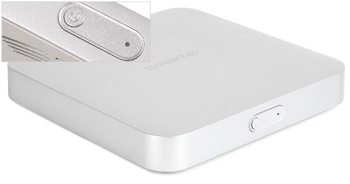 심플함을 극대화한 모델로 전면에는 전원 버튼과 LED 가 설치되어 있다. (전원 버튼을 누르면 파란색 LED 가 켜지게 된다.)