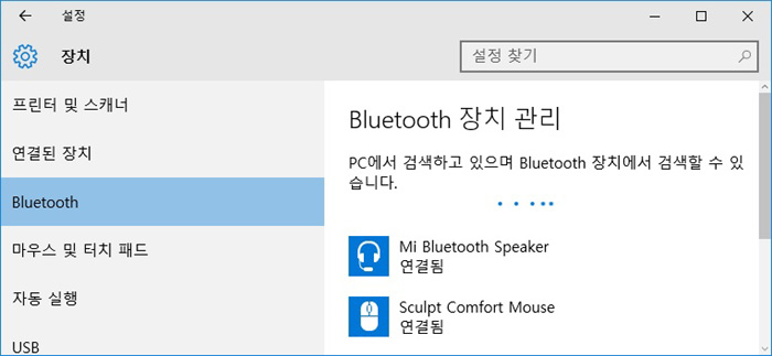 무선랜 뿐만 아니라 블루투스를 지원해 주변기기를 무선으로 연결해 활용할 수 있다. 상단의 사진은 스피커와 마우스를 페어링 한 모습으로 문제없이 작동되는 것을 확인할 수 있었다.