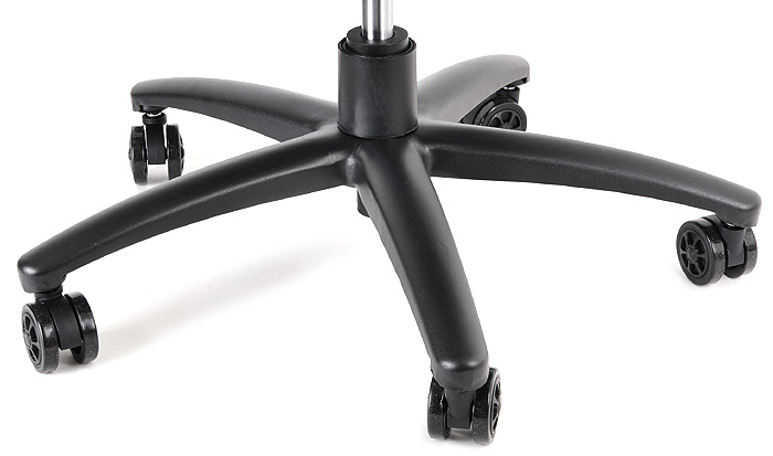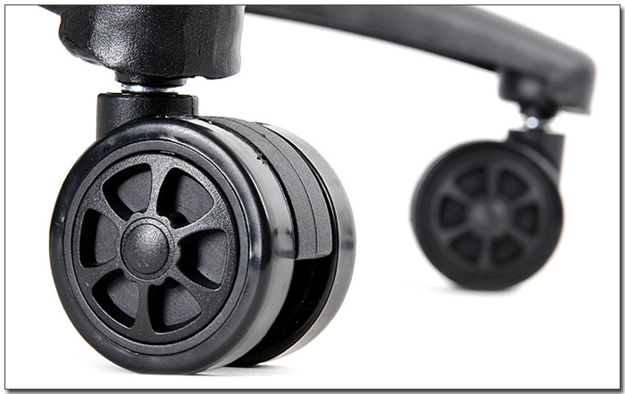 높은 내구성을 구현하기 위해 메탈 베이스 풋이 적용되어 있으며 5개의 기둥이 적용되어 안정성을 높였다. 또한 부드럽게 작동하는 5개의 바퀴 가 설치된 것도 확연할 수 있다.