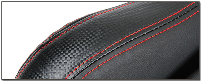 이 제품은 PU 만을 사용한 일반 게이밍 의자와 달리 PVC + PU 재질을 적용해 내구성을 높인 것은 물론 더 고급스러운 분위기를 자아낸다. 특히 사진과 같이 자주 접촉하는 부분에는 카본 소재의 섬유를 적용해 오래 사용해도 색이 바래서나 찟어지는 등의 현상을 미연에 방지한다.