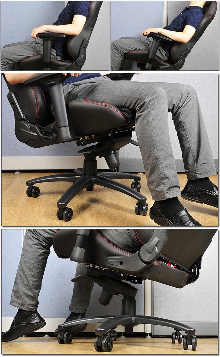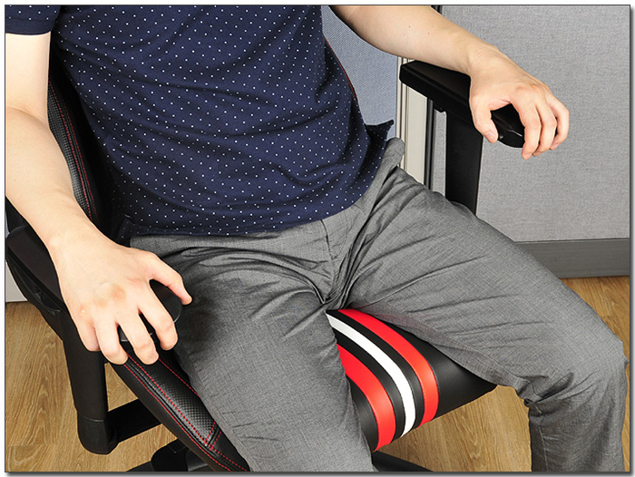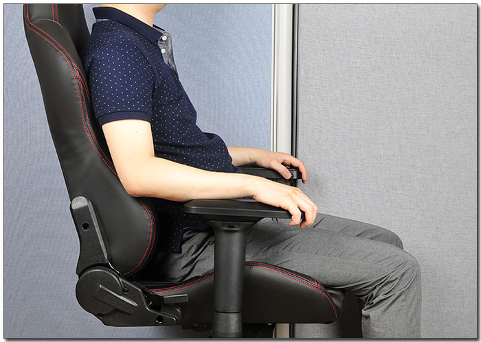 이 제품의 가장 큰 장점은 단연 착석감이라 할 수 있다. PVC 와 PU 재질을 혼합해 자극적인 냄새가 나지 않을 뿐만 아니라 등이나 엉덩이에 전해지는 느낌도 상당히 좋았다. 여기에 넓은 등판 및 좌판시트를 적용해 이리저리 몸을 움직여도 전혀 좁다는 느낌을 받지 않았다. 100Kg 이상의 덩치가 있는 유저들도 충분히 활용할 수 있을 것이다.
