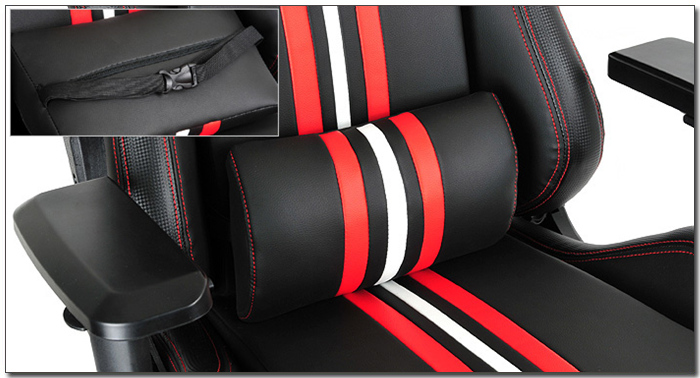 고급형 모델답게 헤드 및 등쿠션을 기본 제공하는 것을 확인할 수 있다. 장시간 게임을 즐기다 보면 몸에 피곤이 쌓일 수밖에 없는데 쿠션을 제공해 피로를 최소화 할 수 있다.