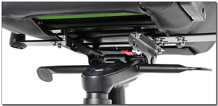 특히 하나의 레버만을 지원했던 전작과 달리 이 제품은 틸팅과 틸팅고정을 제어하는 레버가 추가로 부착된 것을 알 수 있다.(대부분의 고급형 게이밍 의자는 2개의 레버를 지원하는 컨트롤러를 사용한다.)