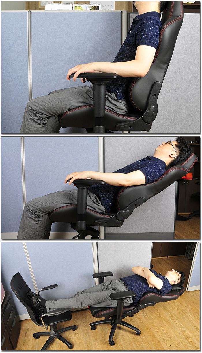 단, 180도 각도조절시에는 반드시 틸팅고정을 해야 한다. Free 상태에서 180도로 각도를 조정했을 때 의자 전체가 움직여 위험할 수 있기 때문이다. 제품을 구입하는 유저들은 이점을 반드시 유념하기 바란다.