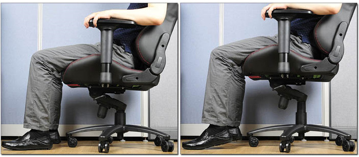 자신의 키에 맞게 시트의 높낮이 조절을 할 수 있다. 고급형 가스스프링을 사용해 부드럽게 움직이는 것이 매우 마음에 들었다.