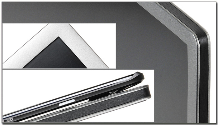 3H 코팅 처리된 안티글레어 패널을 탑재해 눈부심을 방지하며 슬림 배젤을 적용해 디자인 만족감을 높였으며 1Cm를 넘지 않는 패널두께로 차별화를 꾀했다. (상단의 사진에서 확인할 수 있듯 스마트폰에 근접하는 슬림한 두께로 날렵한 이미지를 강조한 것이 눈에 띈다.)