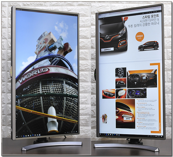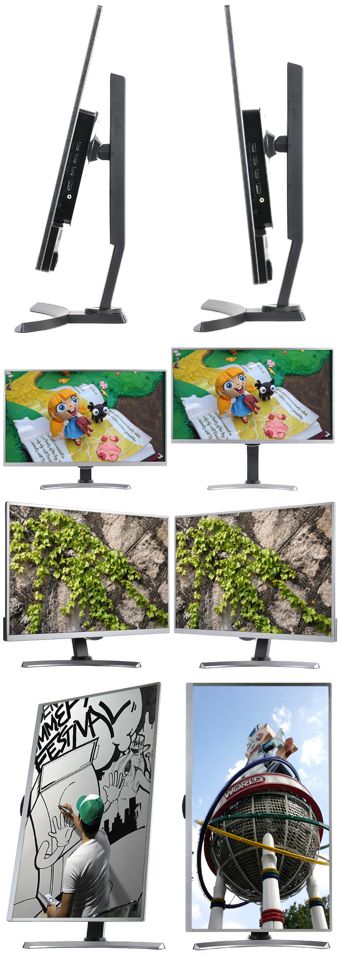 DTP (전자출판)을 비롯해 세로사진 감상 및 오피스 등의 업무에서 피벗 모드를 사용할 수 있으며 최근 많은 유저들에게 인기를 끌고 있는 '직캠'을 풀사이즈로 즐길 수 있는 장점이 있다. 화면가득 생생한 영상을 즐길 수 있을 것이다.