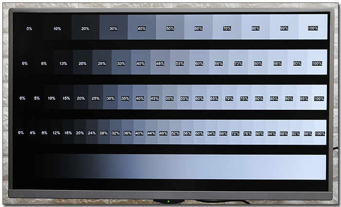 1000:1 의 명암비 지원으로 그레이스케일 차트는 충분히 구분할 수 있었으며 높은 해상도를 지원하는 모델이지만 크로마서브 샘플링 4:4:4 기술 제공으로 만족스런 폰트 가독성을 경험할 수 있었다. (번지는 느낌없이 선명하게 폰트를 표현해 주었다.)