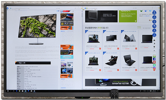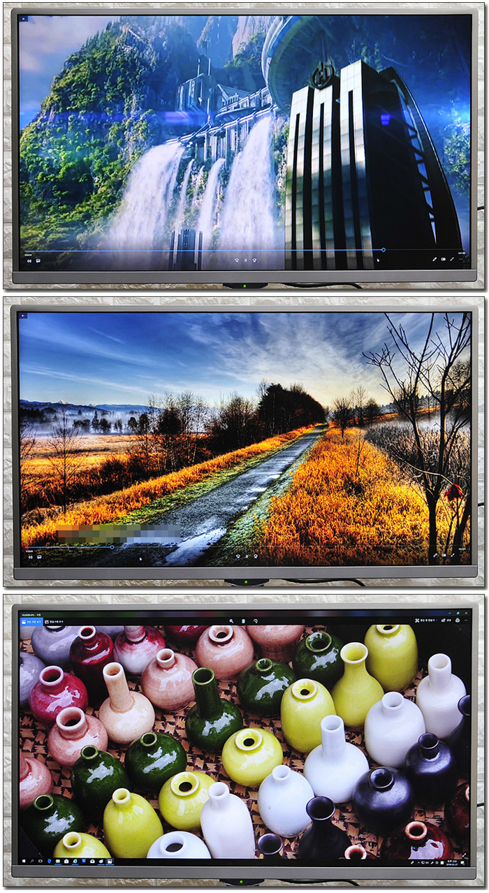 화질 테스트를 진행하고 있는 모습으로 IPS 패널에 10억 7천만 컬러를 지원하는 모델답게 생생하게 살아있는 원색을 경험할 수 있었다. 밝고 화사한 컬러를 선호한다면 충분한 만족감을 경험할 수 있을 것이다.