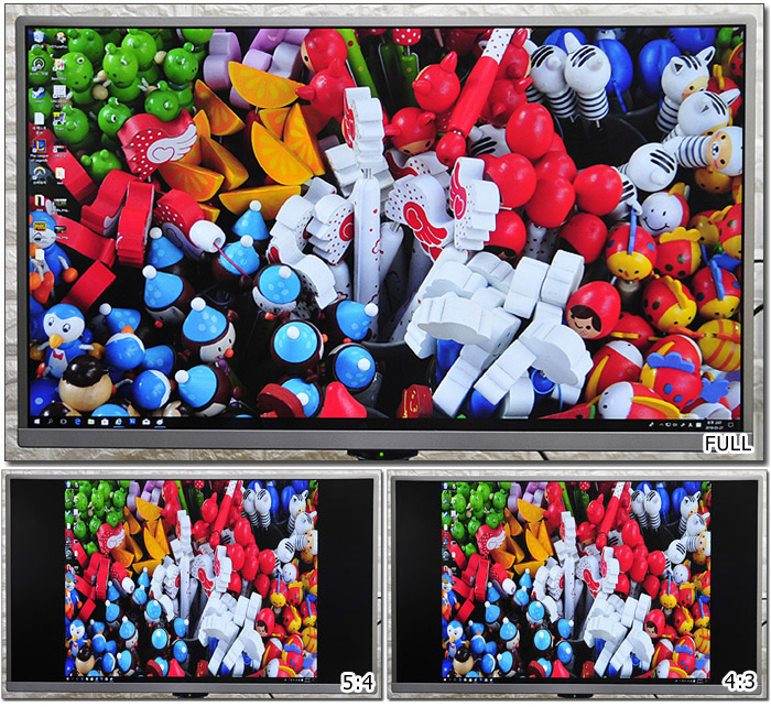사진과 같이 전체화면 뿐만 아니라 4:3 과 5:4 화면비 설정도 지원해 구형 게임이나 동영상 감상도 문제가 없다.