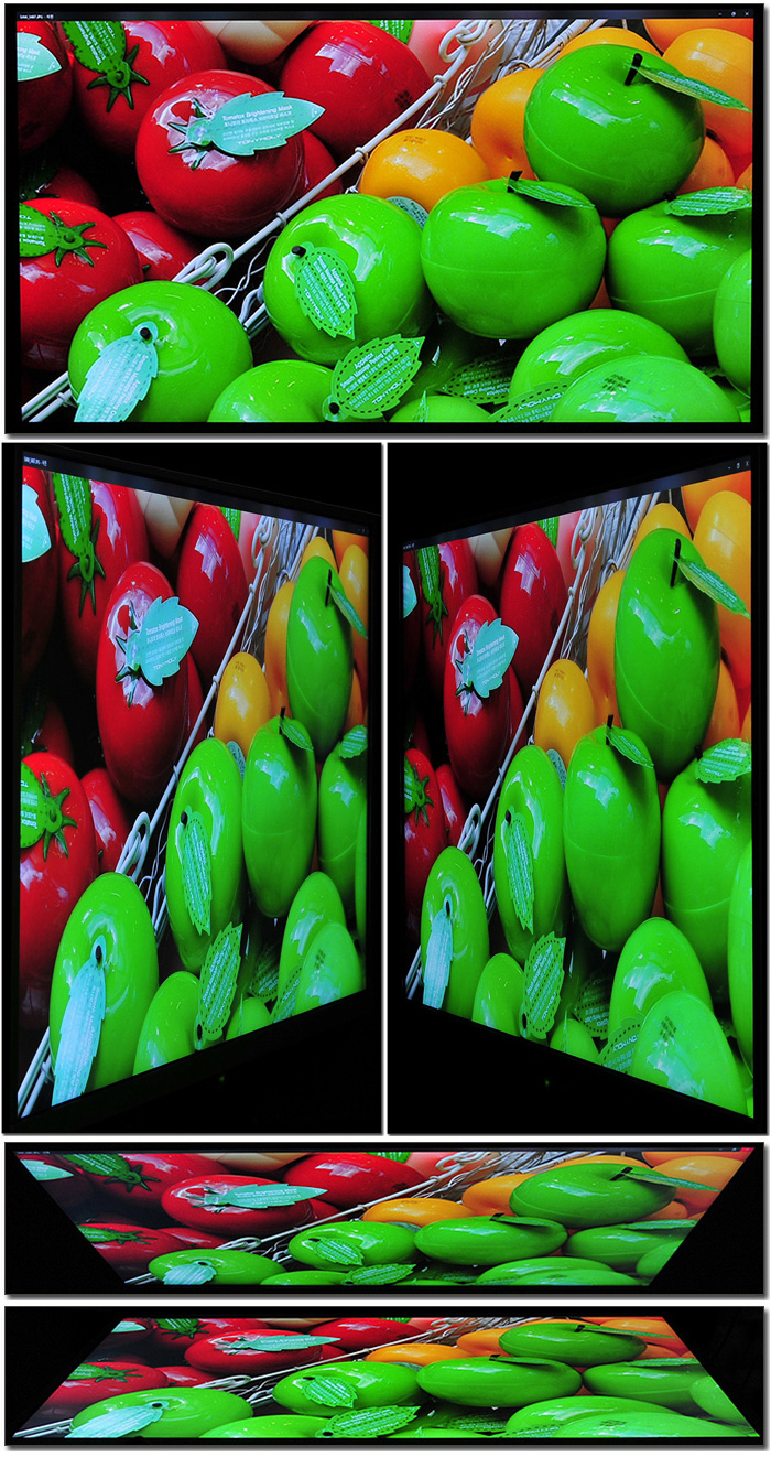이 제품은 IPS Tech 패널을 탑재한 모델로 시야각으로 인한 불편없이 사용할 수 있다. 상단의 사진은 시야각 테스트를 진행하고 있는 모습으로 어떤 각도에서도 시야각 없는 선명한 영상을 즐길 수 있었다.