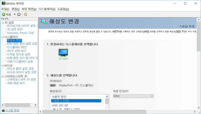 PBP 는 2분할과 3분할도 지원해 사용성을 높였으며 화면안에 또하나의 화면을 제공하는 PIP 기능도 제공된다. @ 2분할이나 3분할 PBP를 실행할 경우 사진과 같이 1920 x 2160 의 해상도를 임의로 만들면 찌그러짐 등을 방지할 수 있다.