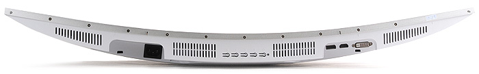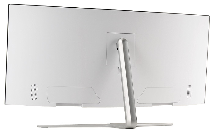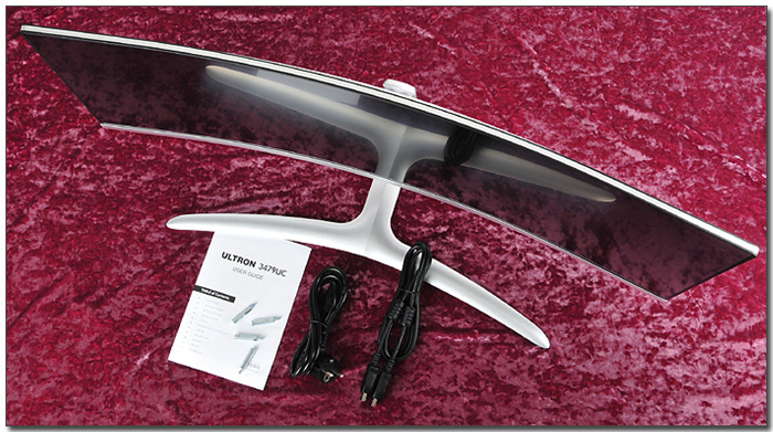 815 x 450 x 250 mm 의 크기와 8Kg 의 무게로 20형 대의 16:9 비율 모니터와는 확연한 차이를 보여주고 있다. 가로의 길이가 상당히 긴 제품으로 듀얼모니터를 설치할 정도의 넉넉한 여유공간을 필요로 하며 커브드 디스플레이가 장착되어 있기 때문에 조립에도 신경을 쓸 필요가 있다. (스티로폼에 패널이 장착된 상태에서 스탠드를 조립하기 바란다. 눌림 등으로 인해 패널이 파손될 수도 있기 때문이다.)