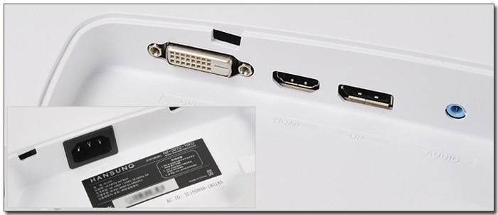 고급형 모델답게 다양한 단자부를 제공한다. DP 1.2 와 HDMI 2.0을 지원하며 DVI-D 와 오디오 출력, 전원 단자 등이 설치된 것을 확인할 수 있다. PC 뿐만 아니라 게임콘솔이나 멀티미디어 기기 등을 연결해 활용할 수 있을 것이다.
