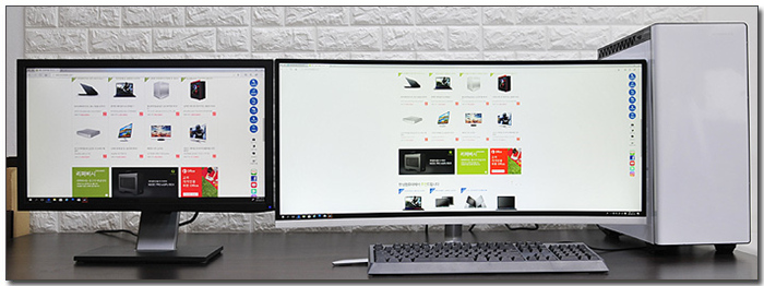 테스트를 위해 모니터를 셋팅한 김에 두 제품을 비교해 보았는데 베젤이나 패널 두께에서 확연한 차이를 보이는 것을 확인할 수 있었다. 날렵함과 높은 몰입감을 선호한다면 큰 만족감을 경험할 수 있을 것이다.