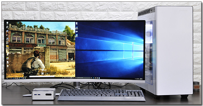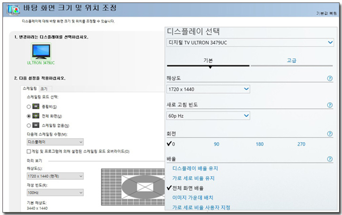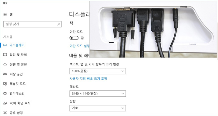 PIP 뿐만 아니라 PBP 기능도 제공되어 2대의 PC를 연결해 활용할 수 있다. 상단의 사진은 미니PC를 추가로 연결한 모습으로 원할하게 작동되는 것을 확인할 수 있었다. 특히 1720 x 1440 해상도가 기본 제공되어 편하게 활용할 수 있었다. (화면이 잘리는 현상이 발생할 경우 배율을 전체화면으로 설정하기 바란다.)
