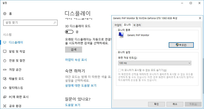 높은 해상도와 주사율을 지원할 뿐만 아니라 주로 게이밍에서 활용하는 모델이기 때문에 일정수준 이상의 퍼포먼스가 보장되는 그래픽 카드 사용을 권한다. (최소 GTX 1050Ti 급은 사용해야 한다.)