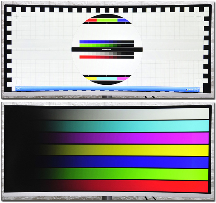 모니터 테스트 프로그램을 실행한 모습으로 VA 계열 특유의 자연스러운 컬러를 보여 주었지만 선명함도 충분히 살아있는 것을 확인할 수 있었다. 특히 원색의 표현력이 뛰어난 모델로 다소 뿌연 느낌을 주는 일부 게이밍 모니터와는 확연히 비교되는 영상을 즐길 수 있을 것이다.