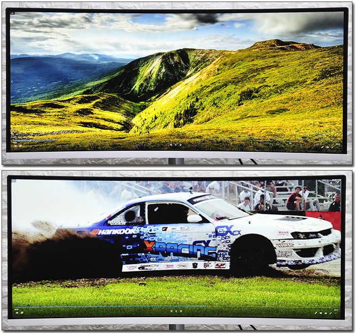 평면 패널을 탑재한 일반 모니터와 달리 커브드 패널을 탑재해 높은 몰입감을 경험할 수 있다. 사진에서 확인할 수 있듯 높은 곡률을 지원해 일반 패널과는 확연히 비교되는 영상을 즐길 수 있을 것이다.