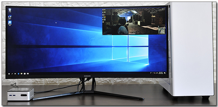 이 제품은 PBP 와 PIP를 지원해 사용성을 높였다. 상단의 사진은 미니PC를 추가로 연결해 PBP 테스트를 진행하고 있는 모습으로 정상적으로 작동하는 것을 확인할 수 있었다. (화면이 찌그러질 경우 스케일링 메뉴에서 전체화면을 선택하기 바란다.)