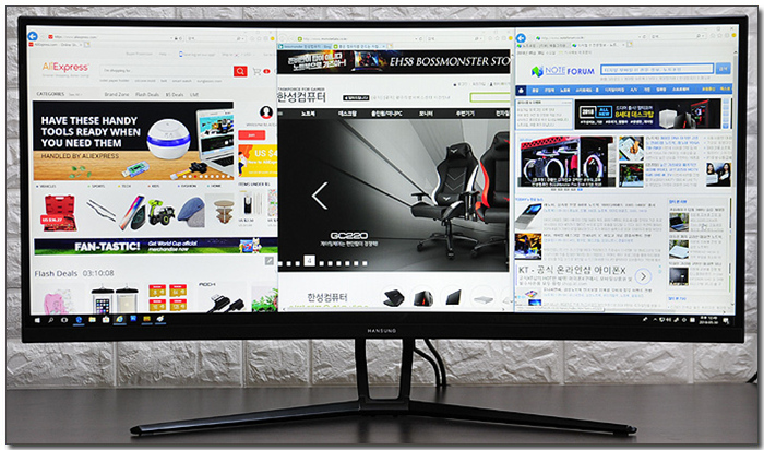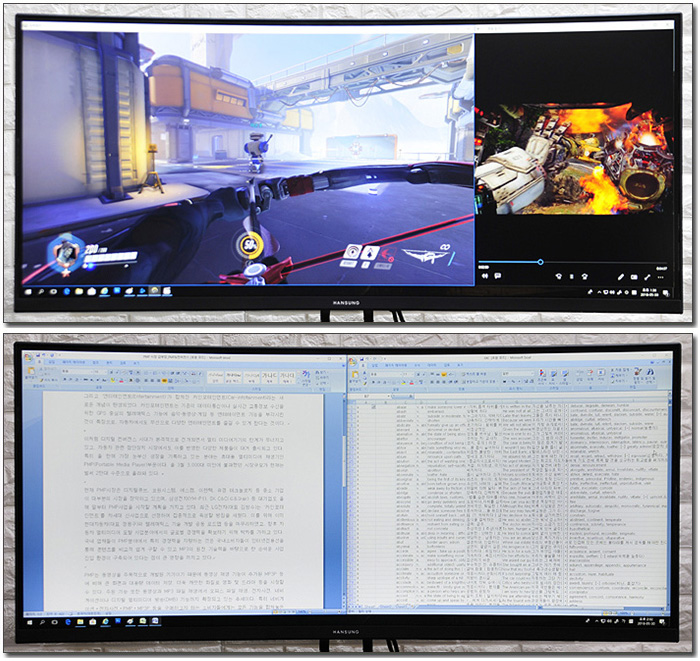 35형 대화면과 WFHD 해상도 지원으로 멀티테스킹에 특화된 모습을 보여준다. 창모드로 지정해 게임을 즐기면서도 동영상이나 웹서핑 등이 가능하며 두 대의 모니터를 사용하듯 오피스 파일등을 동시에 띄어두고 작업할 수 있다.게임뿐만 아니라 다양한 용도로 PC를 사용하고 있다면 다양한 활용이 가능할 것이다.