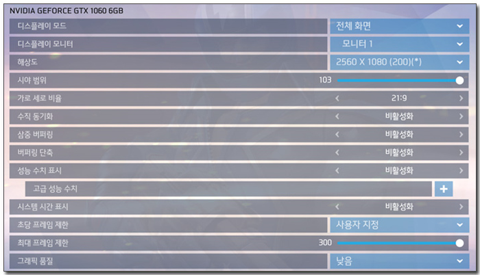 프레임 확보를 위해 그래픽 옵션을 최대한 낮추고 오버워치를 실행하고 있는 모습으로 빠른 움직임이 물 흐르듯 자연스러운 것을 확인할 수 있었다. 누구나 체감할 수 있을 정도로 변화가 확연하며 선명한 컬러감이 더해져 높은 몰입감을 선사했다. (게이밍을 위한 모니터 선택이라면 더할나위 없는 선택이 될 것이다.)