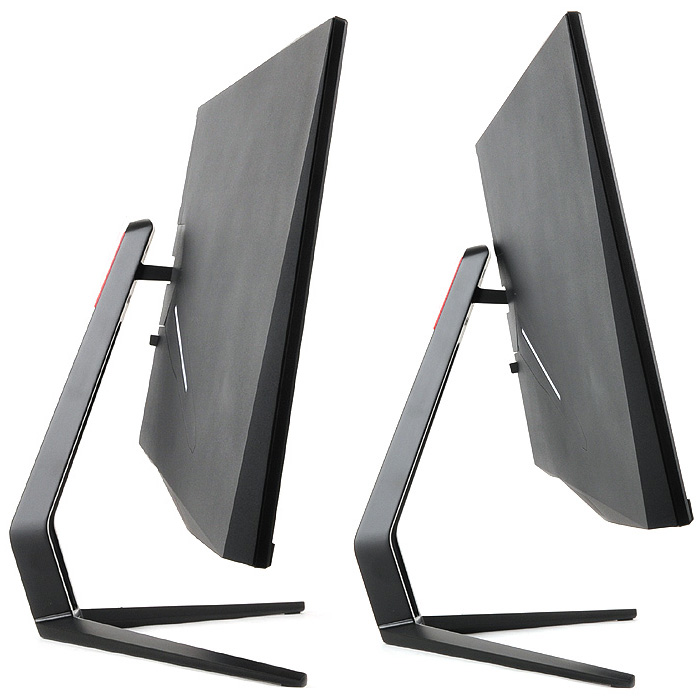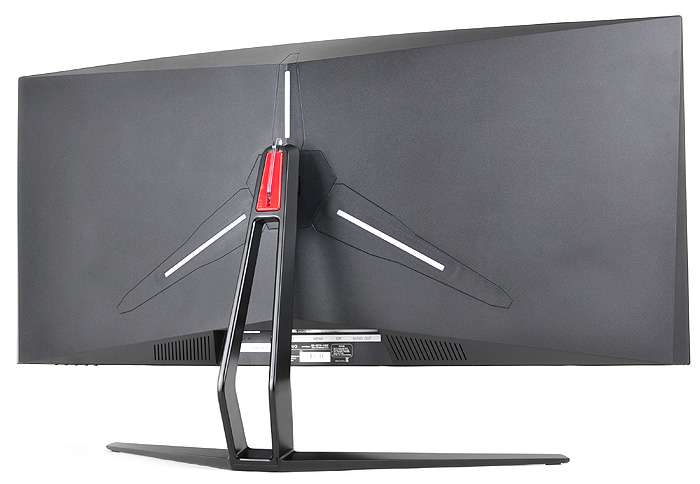 기기의 디자인은 게이밍 모니터 답게 상당히 세련된 것을 확인할 수 있다. 블랙 컬러를 적용해 중후한 느낌을 주면서도 곡선과 직선의 멋을 한껏 살려 보급형 모델들과 차별화된 모습을 보여준다. 여기에 후면에 라이팅 이펙트 적용으로 포인트를 준 것 또한 무척 인상적이다.