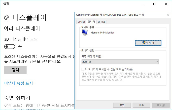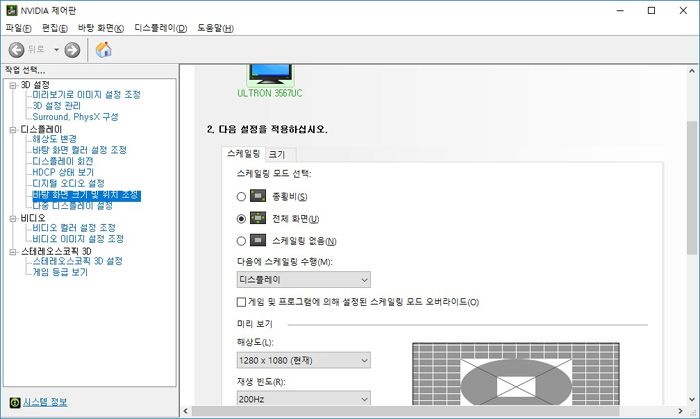 특히 PBP에 최적화된 해상도인 1280 x 1080 이 두 대의 PC에서 모두 지정되어 있어 (사용자가 임의로 해상도를 만들 필요 없이) 편하게 PBP를 활용할 수 있었다.