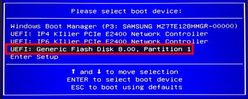 4. 재부팅 되면 한성로고 화면에서 F7키를 연속적으로 눌러 부팅 디바이스를 고르는 화면이 나오면 앞서 제작했던