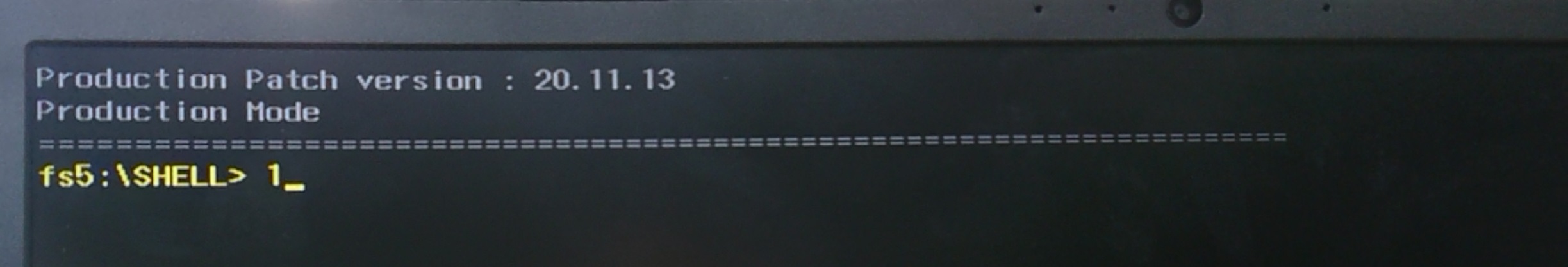 5. 잠시 기다리면 EFI Shell 로 부팅이 됩니다. 프롬프트에 숫자 1을 타이핑하고 엔터키를 눌러줍니다.