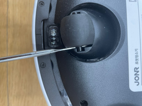 2) 분리된 앞바퀴에 이물질과 먼지를 제거하신 뒤, 로봇청소기 본체에 다시 재장착하시어 소음문제를 해결할 수 있습니다.