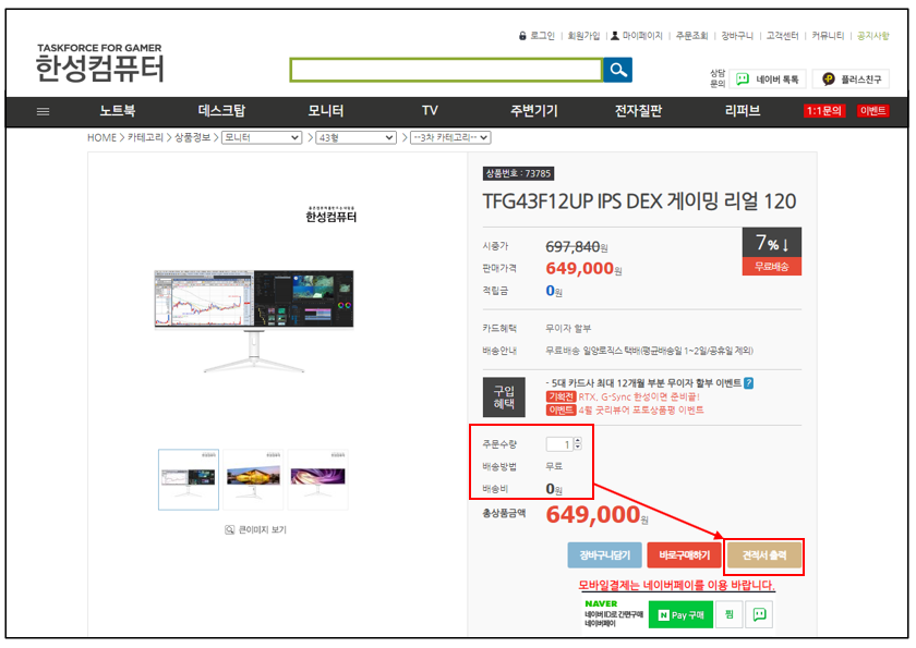 한성컴퓨터를 홈페이지를 통하여 제품 구매 전 견적서 발급이 가능하며.