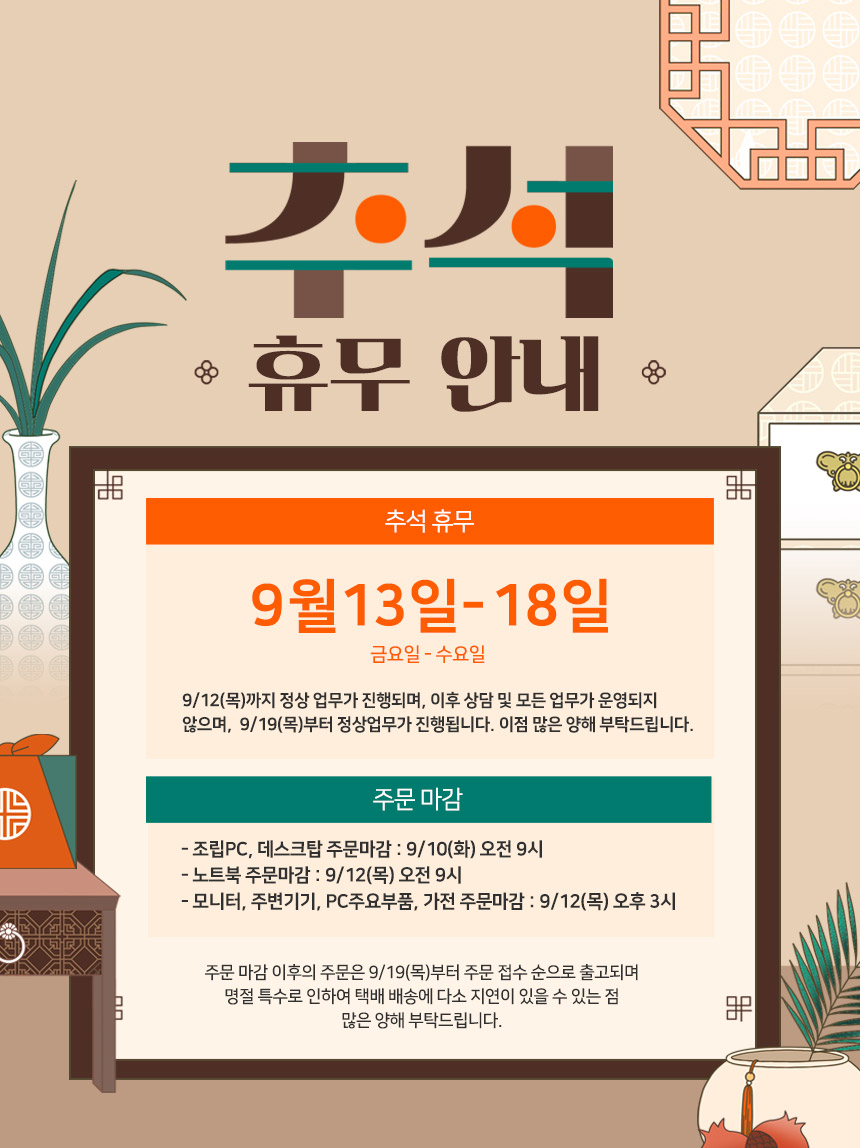 [공지] 한성컴퓨터 추석연휴 휴무 안내