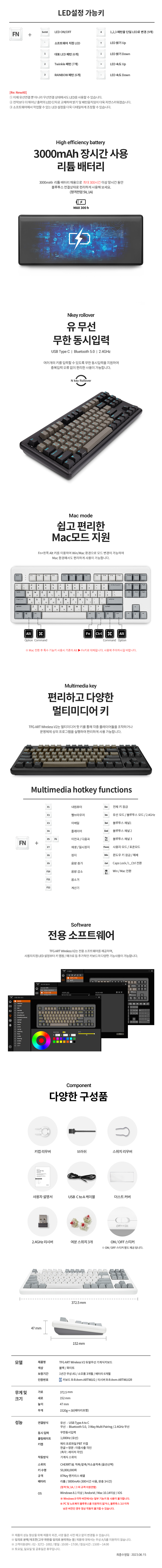| 품명 및 모델명 | TFG ART Wireless V2 듀얼무선 기계식키보드 (블랙/화이트) (한글) | 제조사(수입자/병행수입) | 한성컴퓨터 |