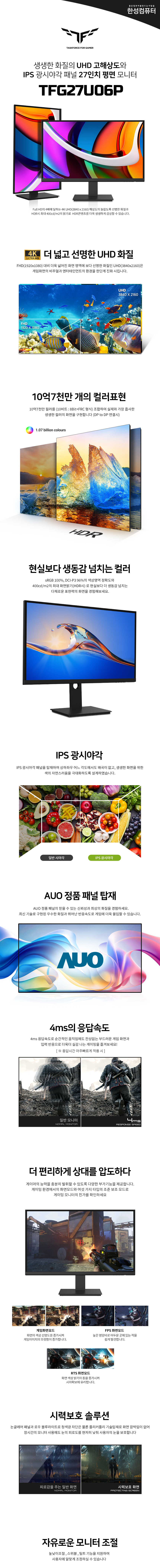 | 품명 및 모델명 | TFG27U06P 4K IPS HDR | 제조사(수입자/병행수입) | 한성컴퓨터 |